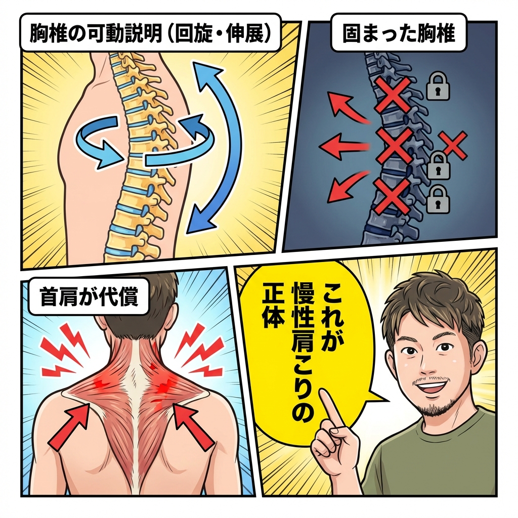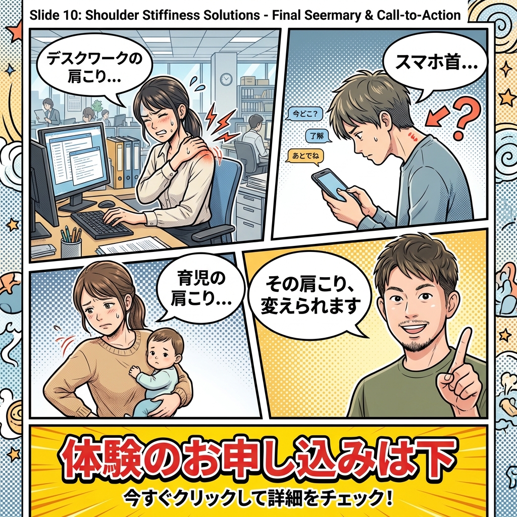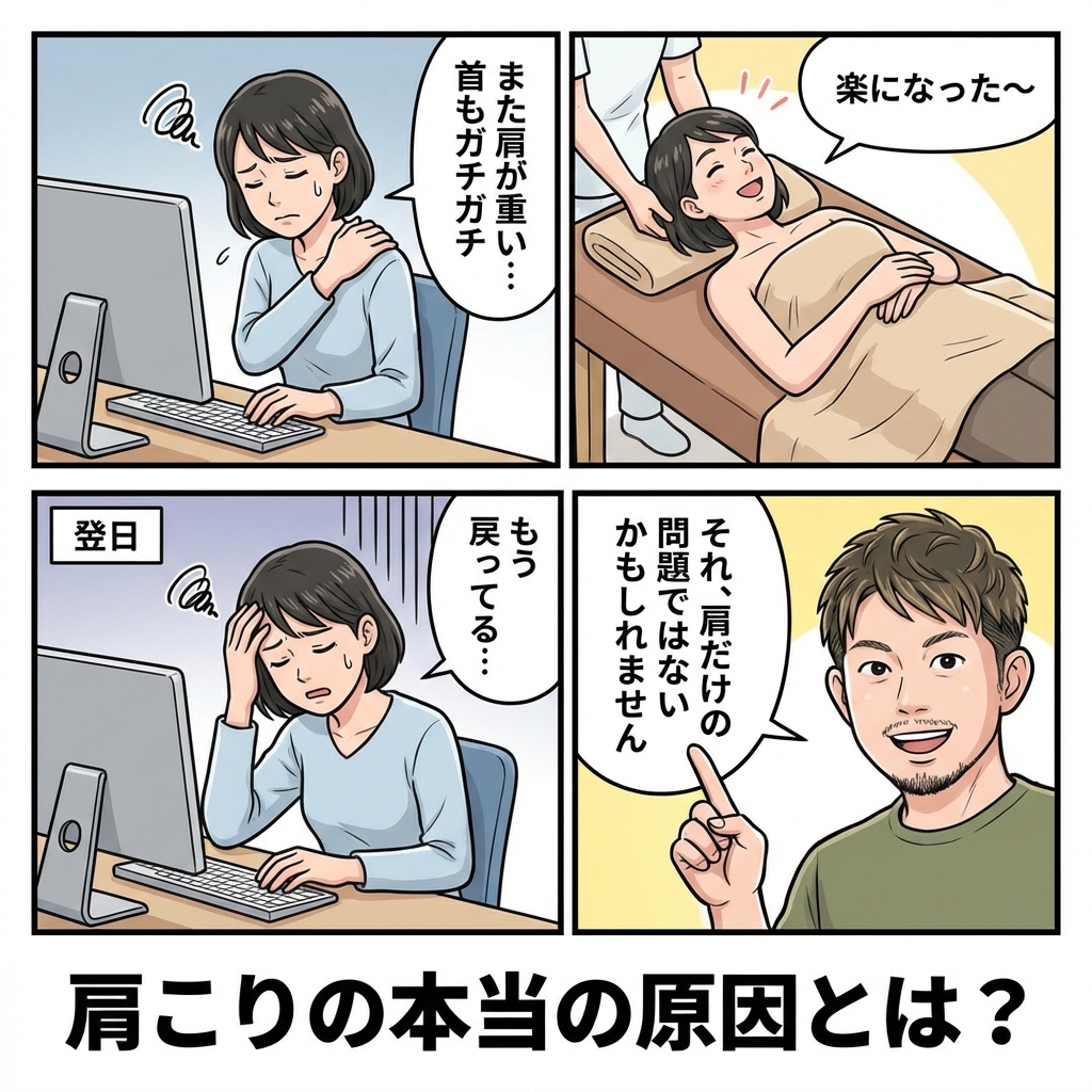 さて、今日はよくある肩凝りのケースを漫画にしてみましたので